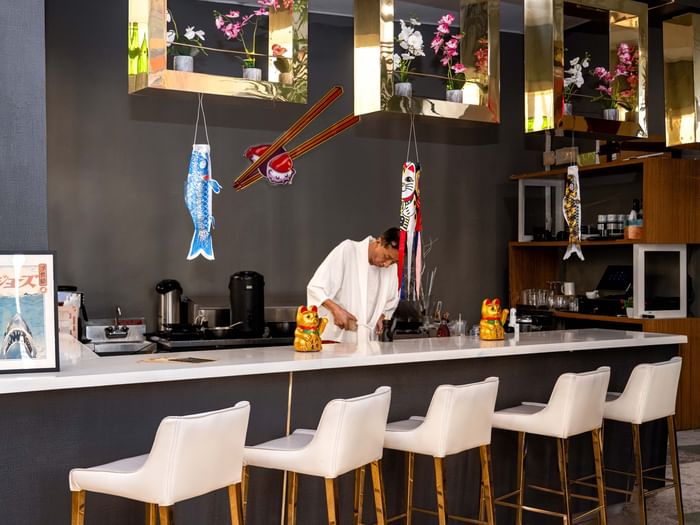 An intimate 8-seat omakase counter led by Chef Shuji Hirose, featuring fresh Japan-sourced ingredients crafted into hand rolls, sashimi, desserts, and more.